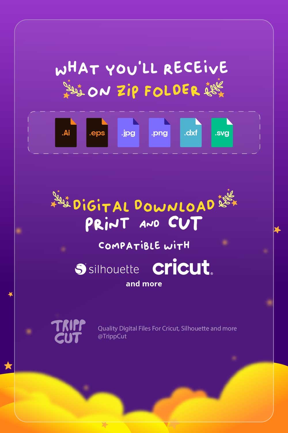 Los archivos son compatibles con las Apps de corte, incluidas Silhouette Studio, Silhouette Studio Designer Edition, Cricut Design Space y otros software. Si usa otras opciones asegúrese que su App sea compatible con los archivos proporcionados, si necesita ayuda para saberlo por favor no dude en escribir, estaré atento a su mensaje.