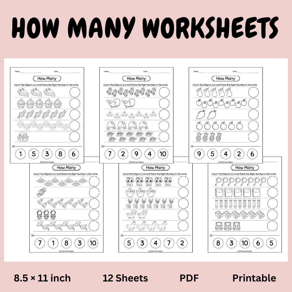 Keywords: How many worksheets, coloring, Cut and paste worksheets, Count and write worksheets, Math worksheets for kids, Counting worksheets for preschoolers, Number recognition worksheets, Kindergarten math worksheets, Early learning worksheets, Fun math activities for kids, Hands-on counting worksheets, Fine motor skills worksheets, Homeschool math worksheets, Printable math worksheets, Preschool counting activities, Interactive math worksheets, Educational worksheets for kids, How many worksheets for kindergarten, Cut and paste counting activities, Count and write numbers worksheets, Engaging math worksheets for preschoolers, back to school, Counting and number recognition activities, Math worksheets for homeschooling, Fun counting worksheets for early learners.