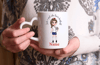 Personalised football mug and matching coaster featuring our England strip doll, choice of hair, skin and eye colours ( to order braids dark skin - please message us through the contact page with requirements.)