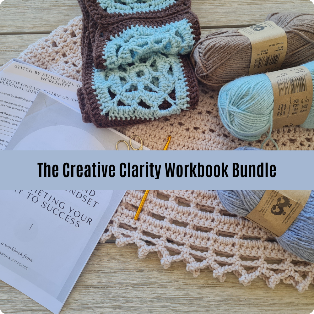 The Creative Clarity Workbook Bundle is a natural extension of that vision, a way for every crafter (not just crocheters!) to slow down, rediscover their spark, and reconnect with the deeper “why” behind their creativity.