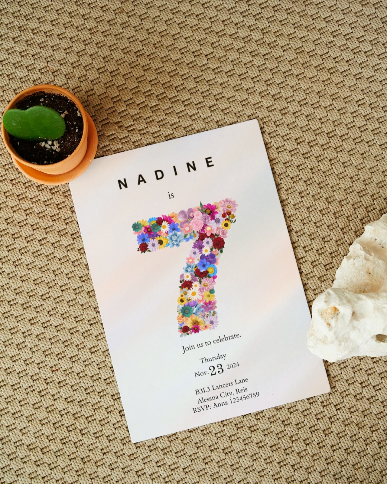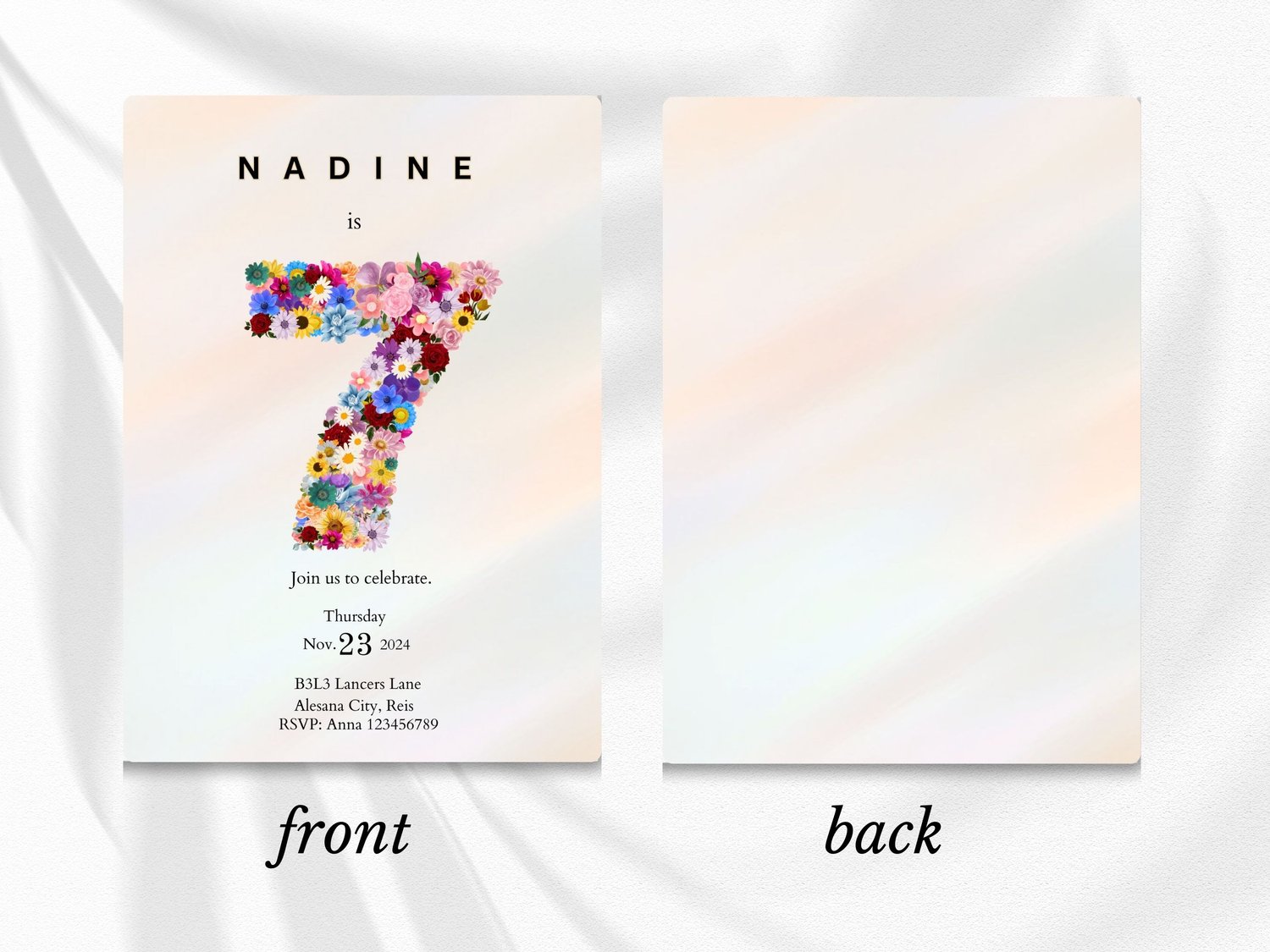 Seventh Birthday Invitation 7th Birthday Party Invite Minimalist Seven Year Old Birthday Invitation Editable Digital Seventh Birthday Invite for Girl