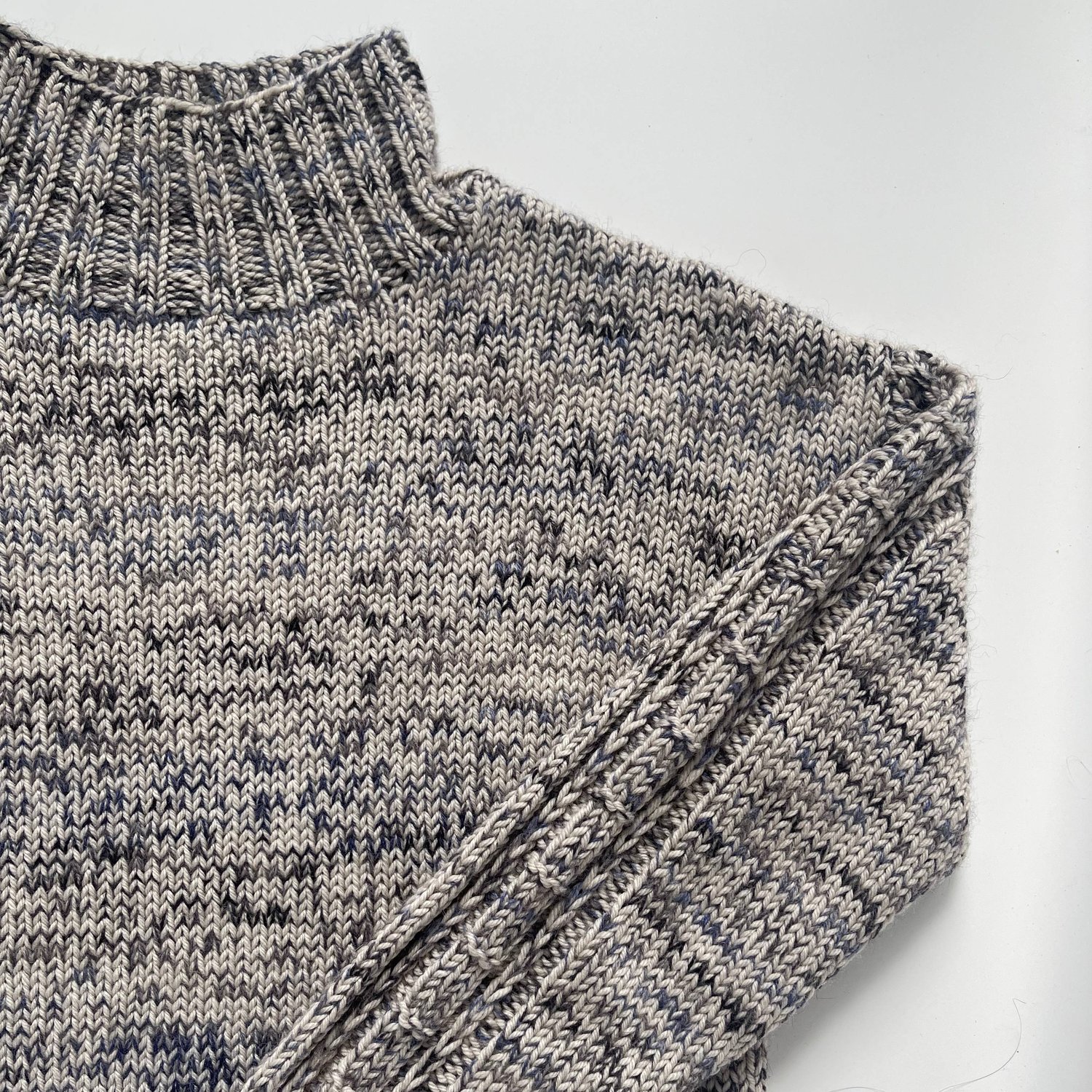 The pullover is knitted holding two yarns together: a classic DK (8-ply) merino paired with a lace-weight (2-ply) yarn. This combination creates a soft fabric while offering plenty of room for creativity. Play with colour, texture, or fibre to make each version uniquely yours — and it’s a wonderful opportunity to feature a special hand-dyed lace-weight yarn from a local indie dyer.