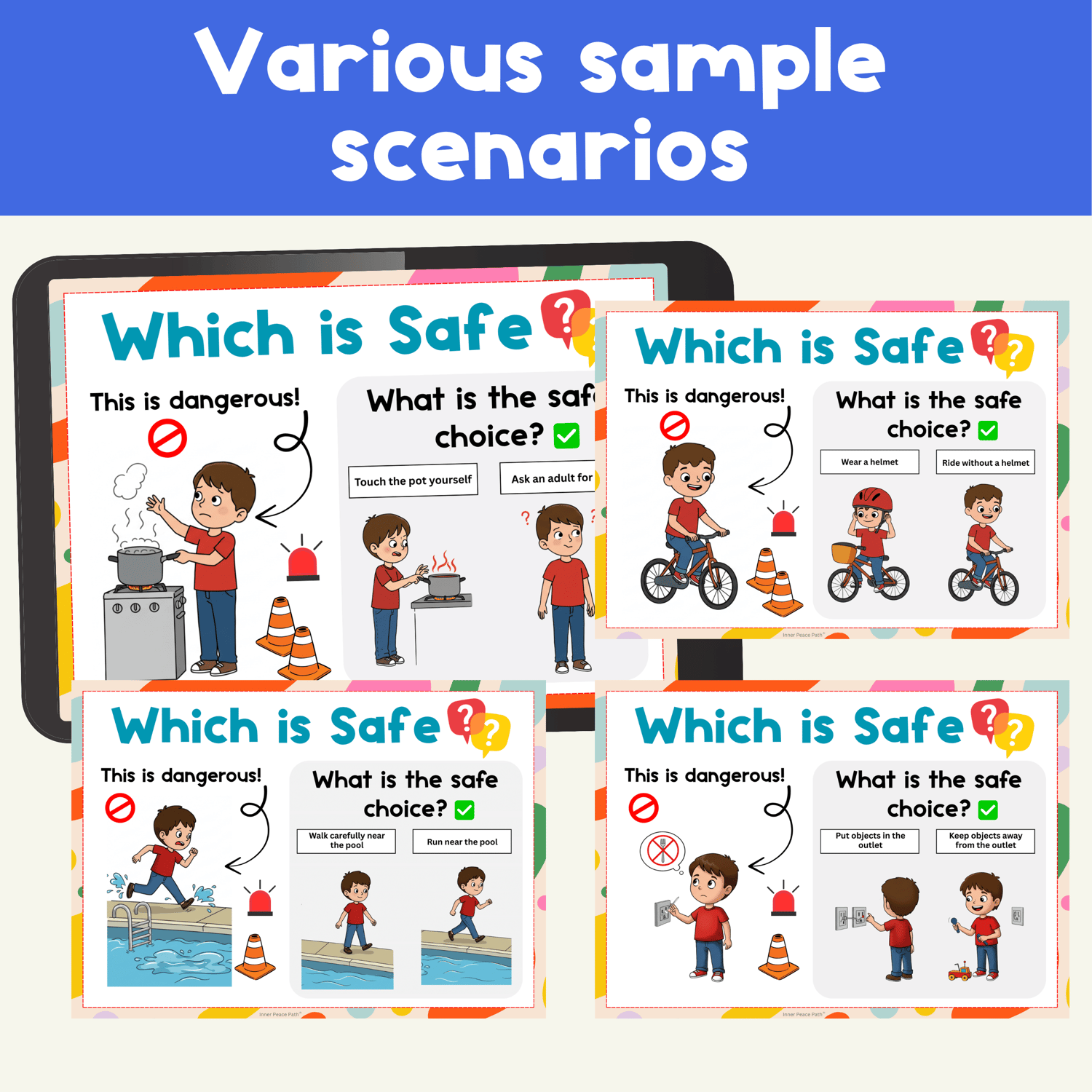 ✔ Real-life scenarios (home, school, community, playground)