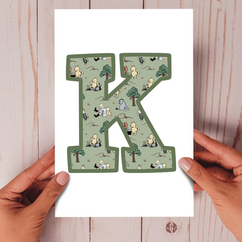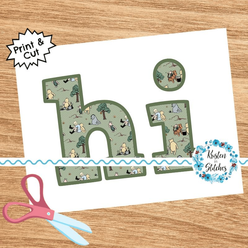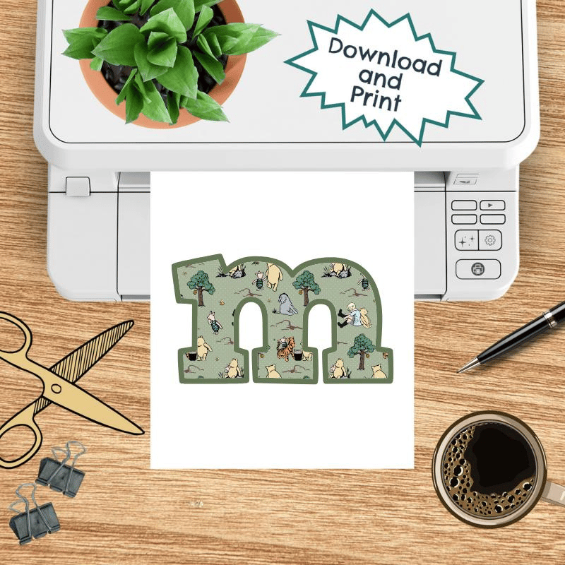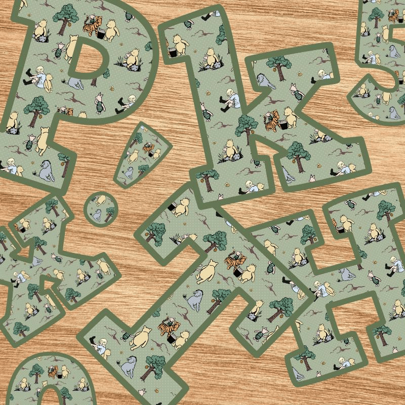 Classic Winnie the Pooh and friends in sage green. Print and cut these alphabet, numbers and symbols. This set includes uppercase and lowercase letters A-Z and numbers 0-9 and common symbols. See photo for a visual of the letters and numbers.