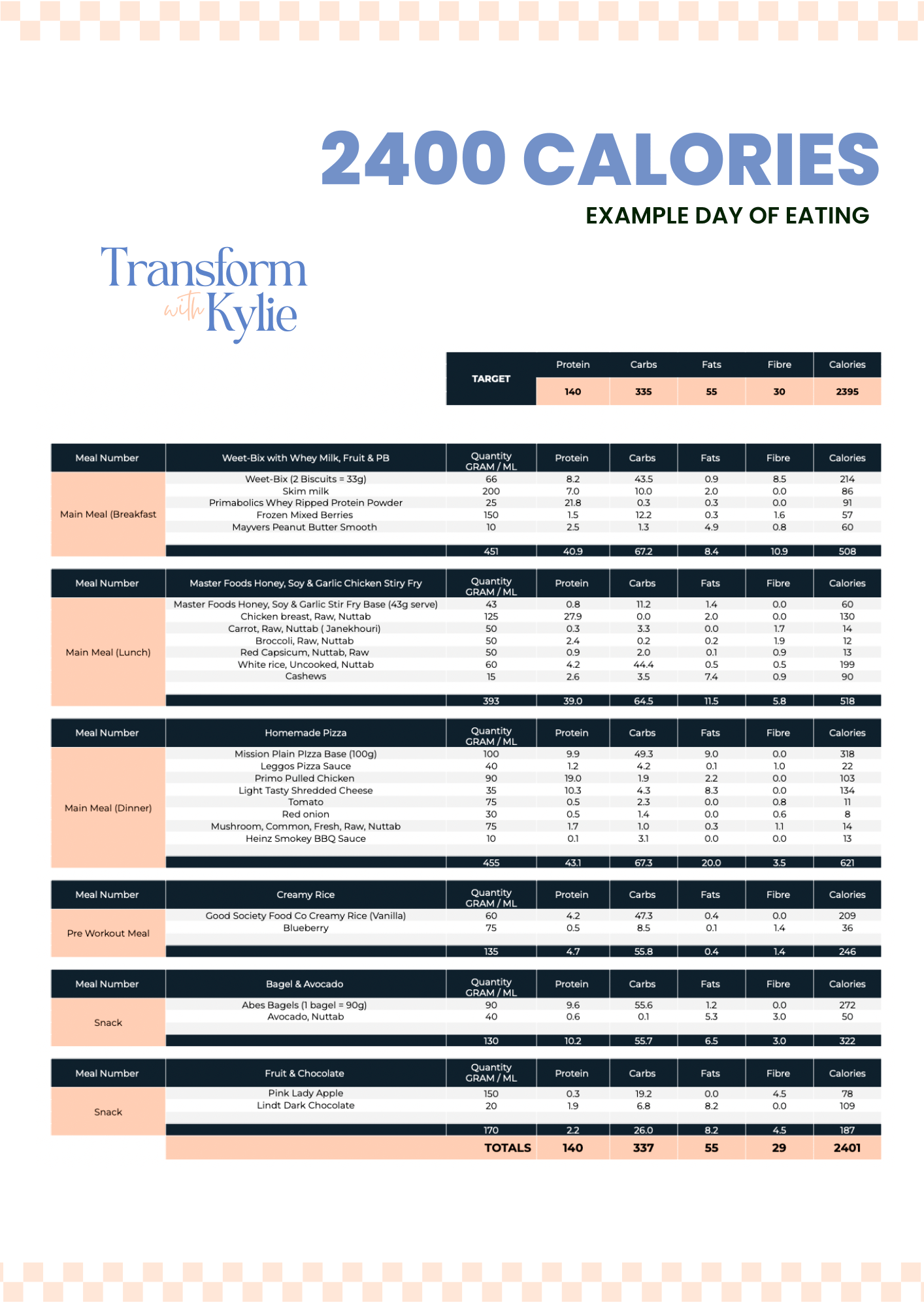 Receive 18 Example Day of Eating Meal Plans ranging from 1,500 -2,400 Calories.