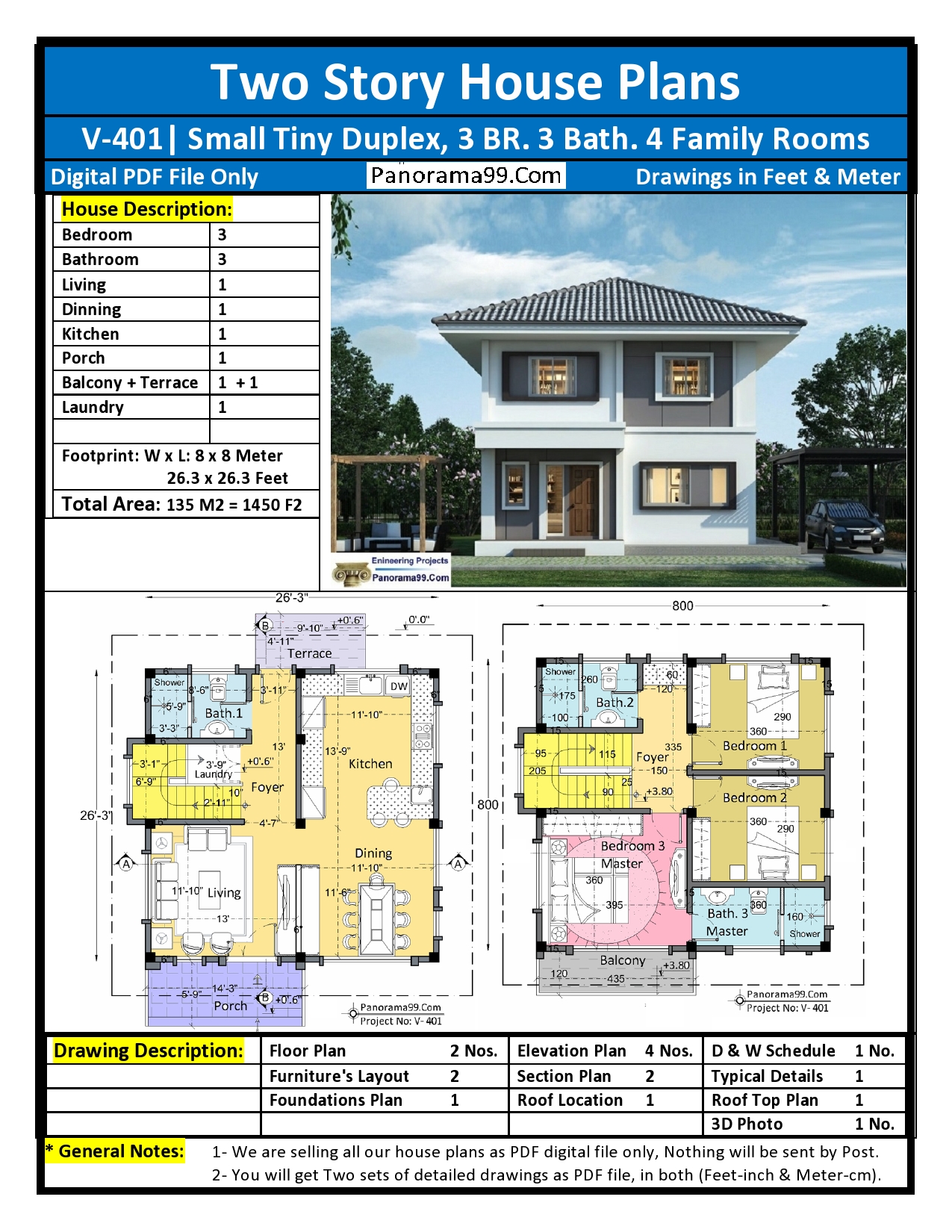 - 2- You will get Two Sets of detailed drawings as digital PDF files, in both units Feet and Meter.
