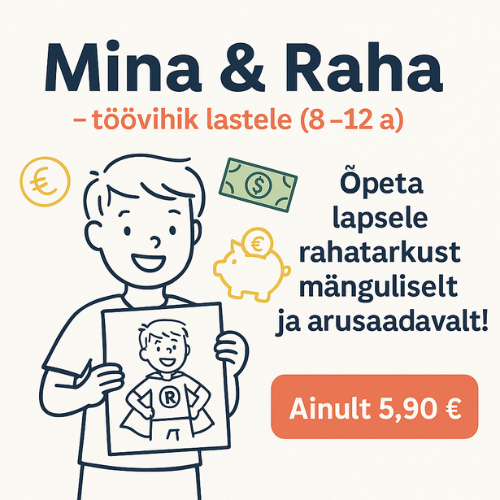 “Mina & Raha” on töövihik, mis aitab 8–12-aastastel lastel mõista raha olemust, säästmist ja nutikat digikäitumist. Lapsed saavad joonistada, arvutada, mõelda ja luua oma esimese eelarve – kõik lõbusal ja lihtsal viisil.