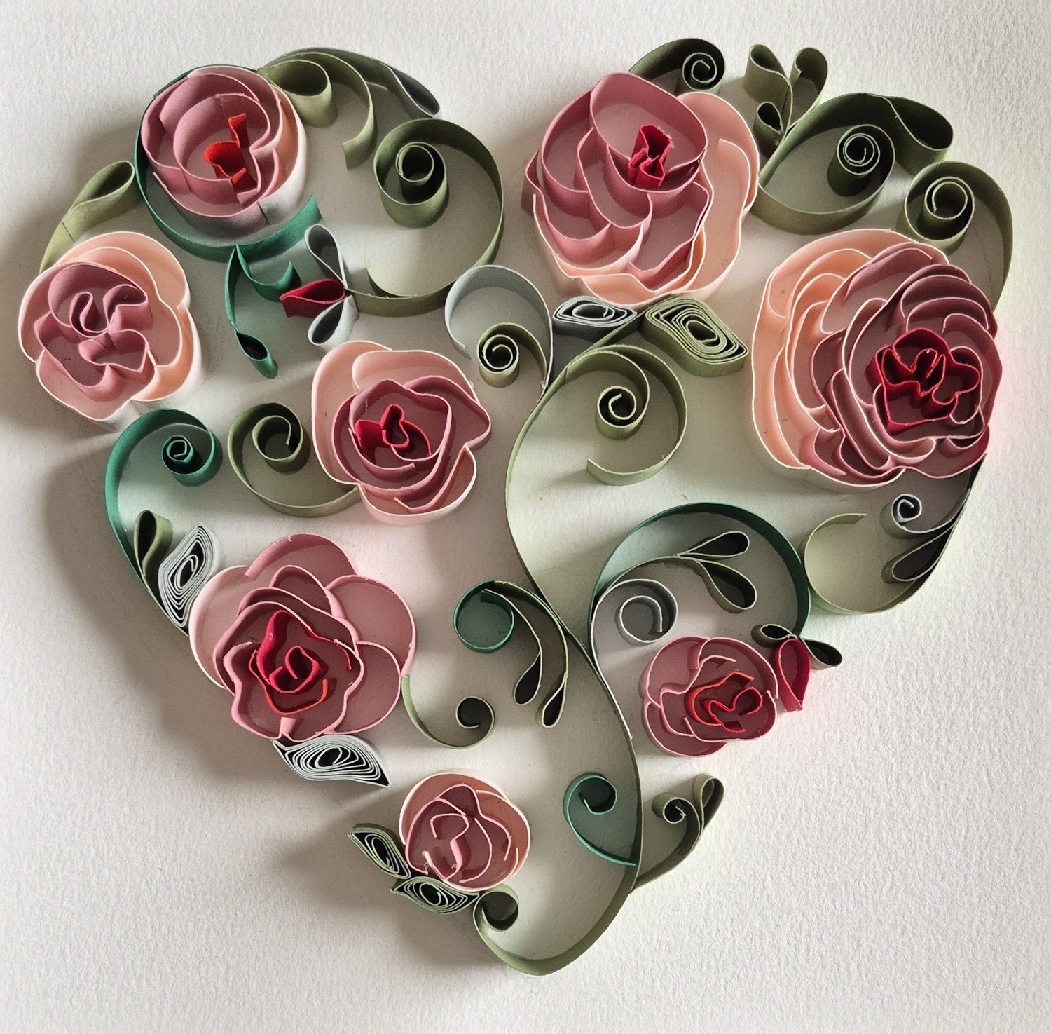 Handmade quilled flowers with ink line drawing.