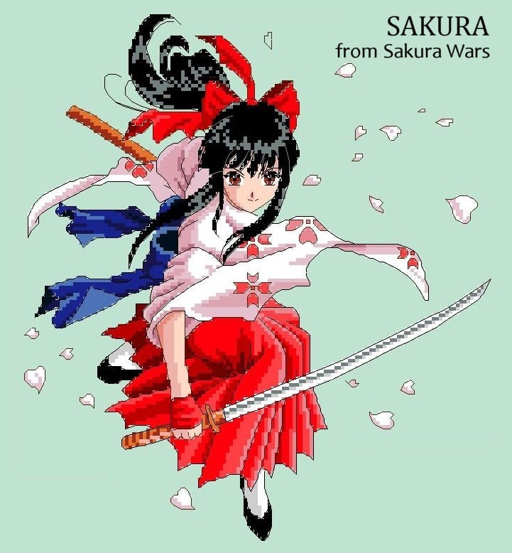 Anime Design Sakura from Sakura Wars Anime Design Cross Stitch PDF Downloadable Pattern