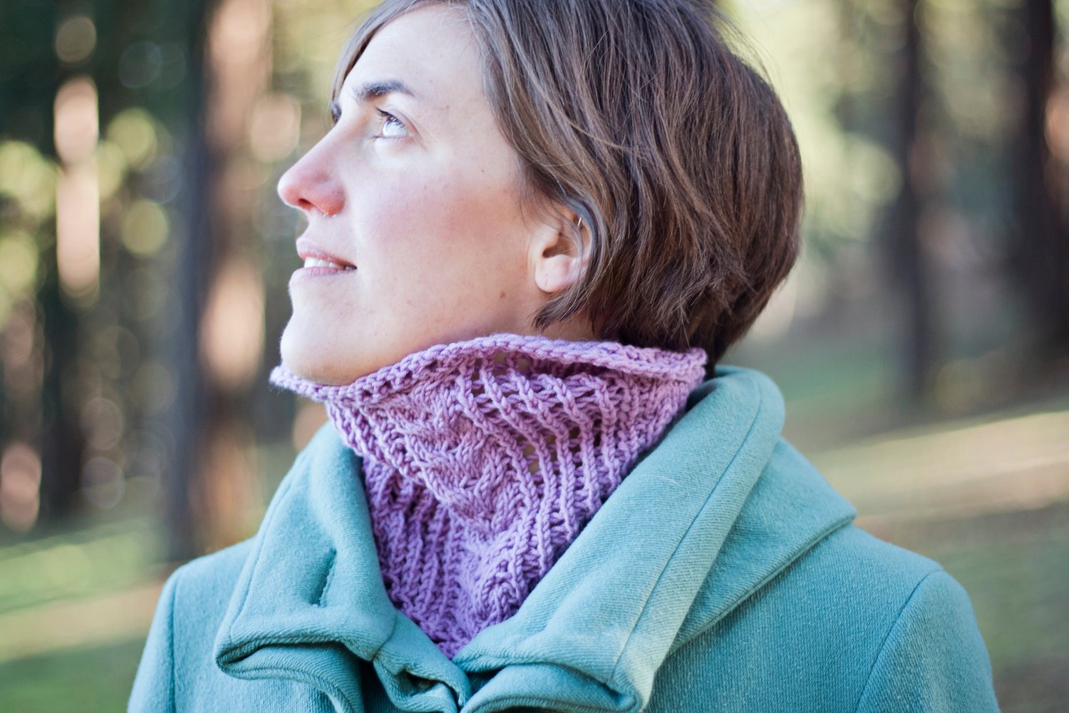 This simple cowl blends two of my favorite things in knitting - simple lace and simple cables - and ends up with a nifty shape that reminds me of ships’ keels. The points help the cowl fit nicely into the neck of a coat - leaving room for your chin and shoulders while giving a little length at the ears.