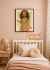 This artwork features a sweet fairy with soft curls, delicate green wings, and a flowing pink-and-green dress. With her outstretched hand and serene expression, she feels like a guardian of dreams — perfect for adding warmth and wonder to nurseries, children’s bedrooms, playrooms, or as a thoughtful gift.