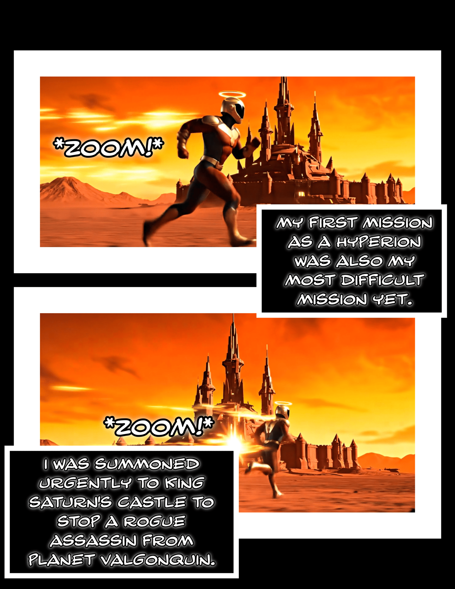 He is Hyperion XI, the living legend of the Saturnian military and a master of combat with Level 5 strength . Forged by a lifetime of discipline, his strength and photon manipulation skills are unparalleled . But his first mission as a Hyperion becomes his greatest challenge yet. A rogue assassin from a distant world has infiltrated the king's throne room, possessing impossible strength and an even more baffling power: invisibility . When brute force fails and every blow misses its mark, Hyperion must use his mind as much as his might to unravel the secret behind his foe's ability before the kingdom falls.