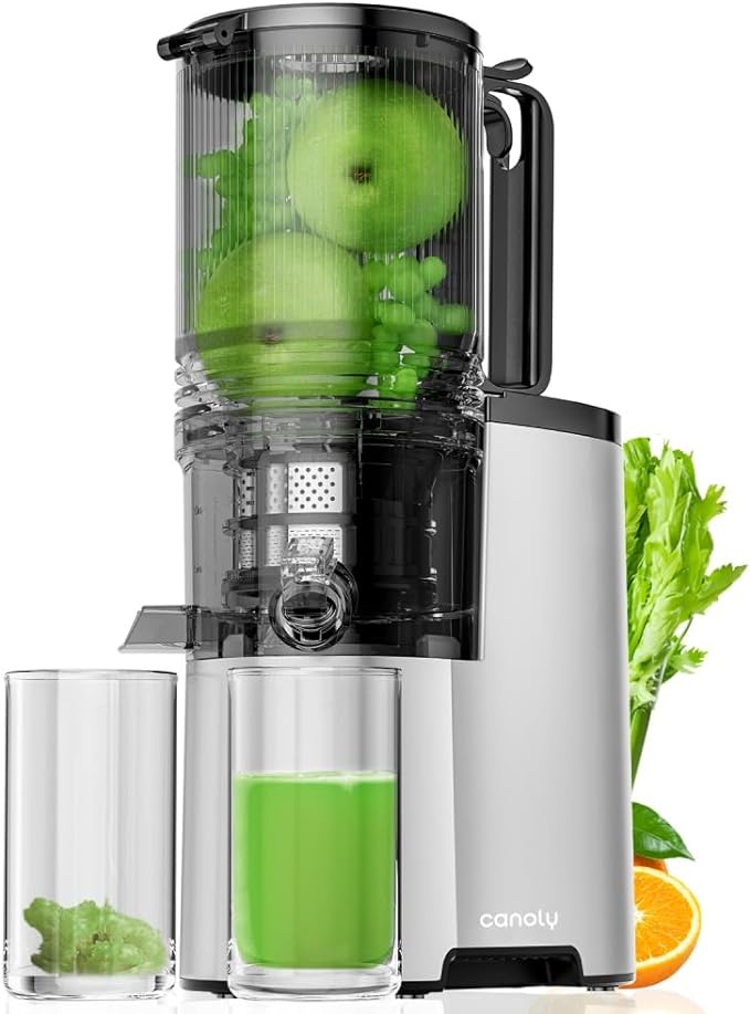 Experience the Canoly Slow Masticating Juicer, perfect for extracting nutrient-rich juices from a wide variety of fruits, vegetables, and more, while ensuring ease of use and minimal cleanup.