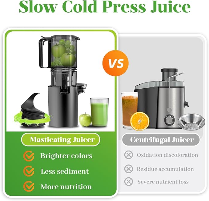 - Whole Fruit Processing: Enjoy the convenience of juicing whole fruits and vegetables with the 4.8-inch reversible feed chute.