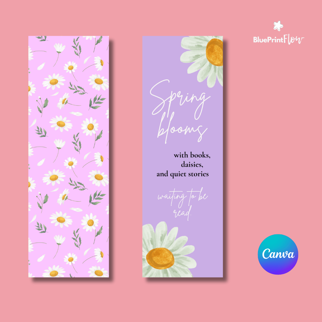 Cute Daisy Flowers Floral Spring Bookmark Canva Template Design