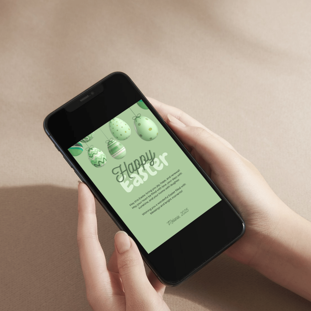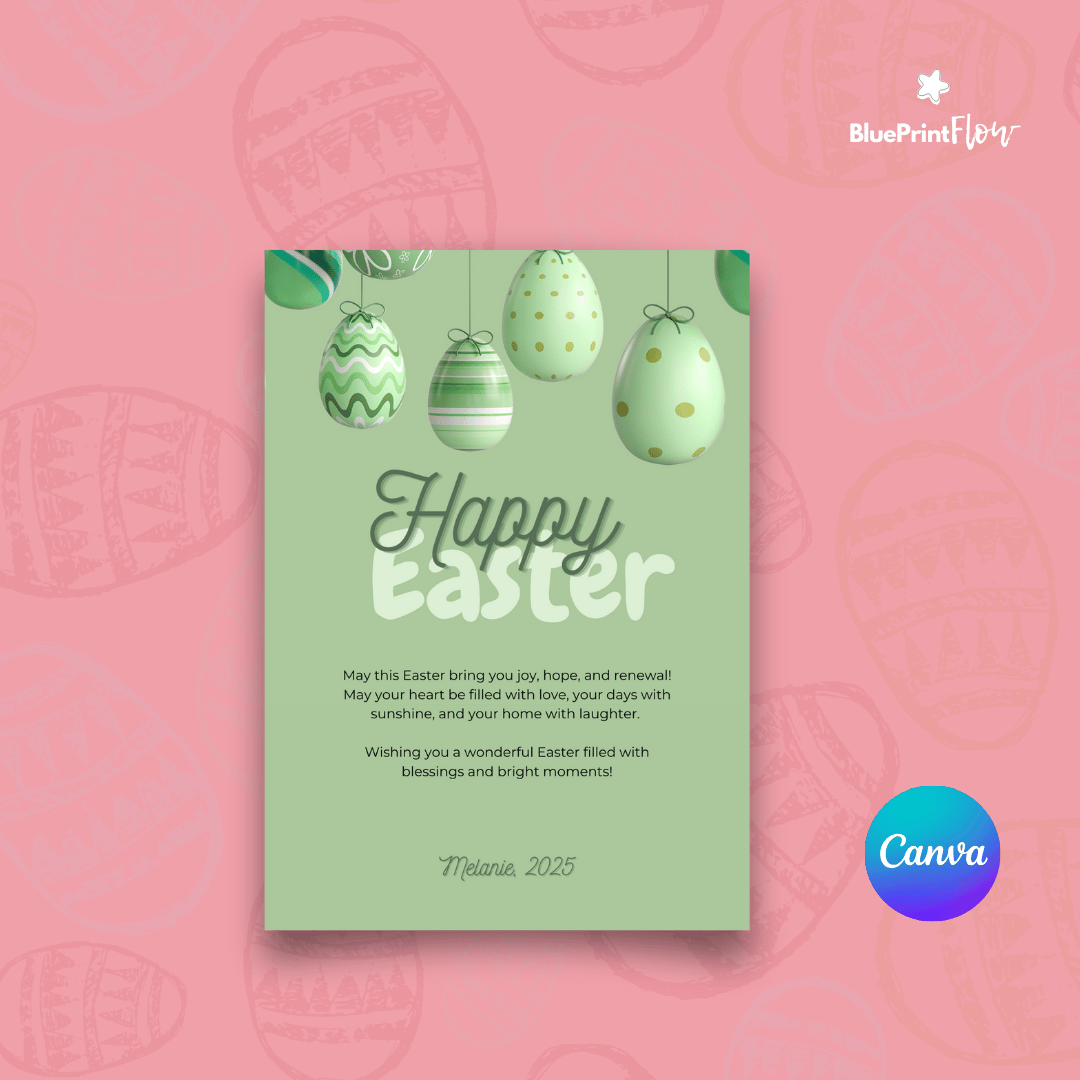 Cute Green Floating Eggs Happy Easter Card Celebration Card Canva Template Design