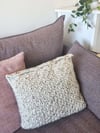 This cozy crochet cushion cover is made by working the Wattle stitch from corner to corner and creates a soft fabric. This crochet pillow cover is removable using 4 buttons to close the cover.