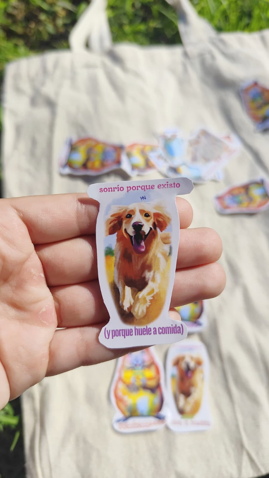 -Sticker perro "sonrío porque existo (y porque huele a comida)".