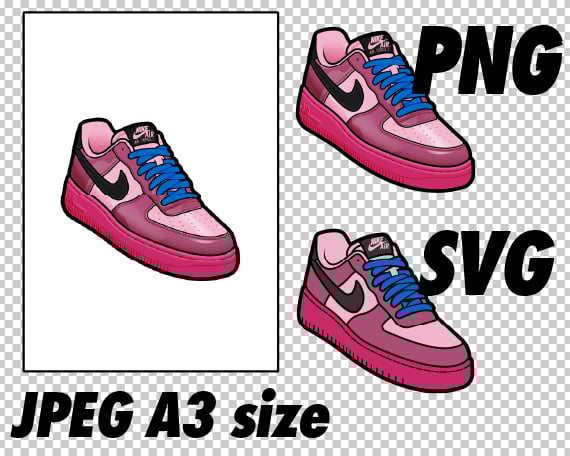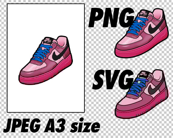Air Force 1 Pink Cooler and Mulberry Rose JPEG PNG SVG Digital Sneaker Art