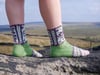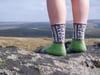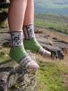 Patterned socks knitted from the toes up with colourwork and twisted stitch patterns.
