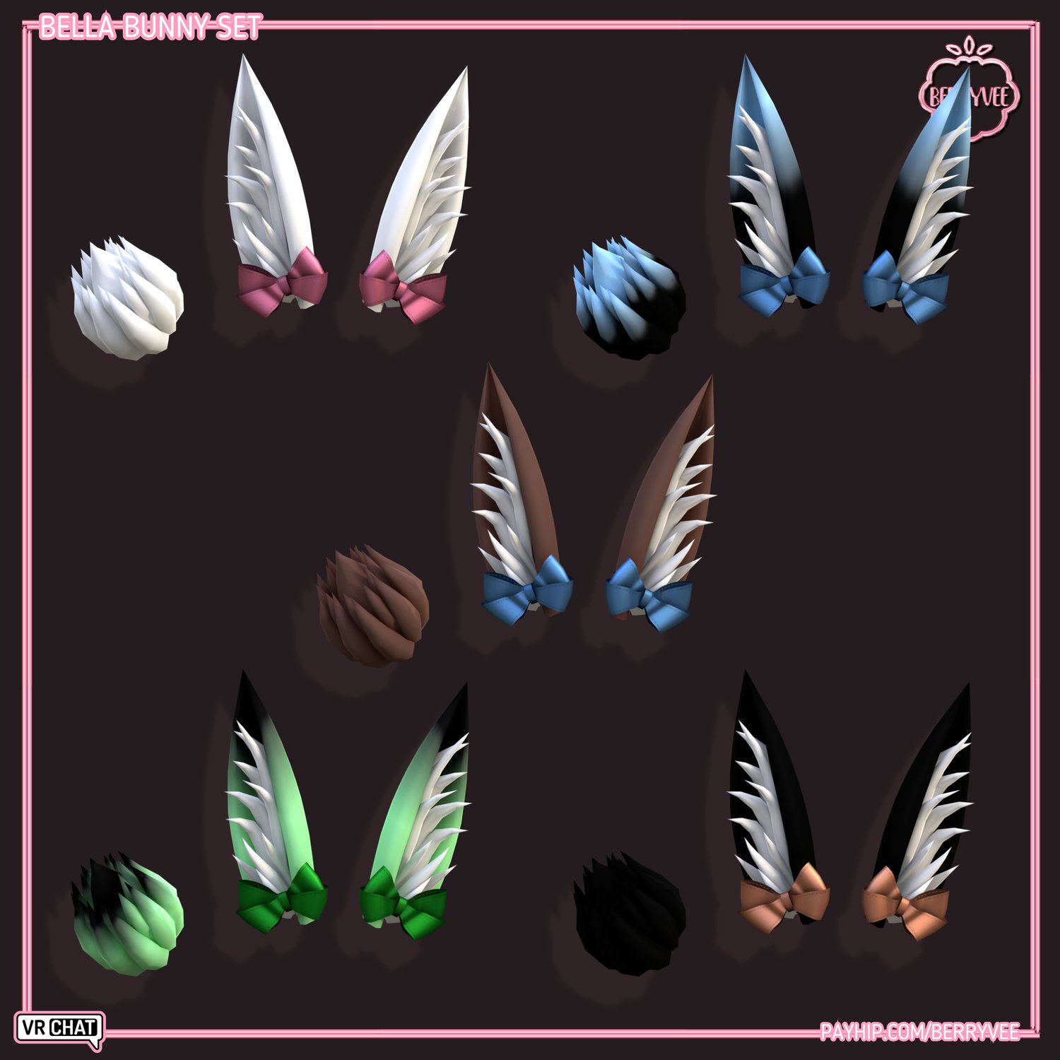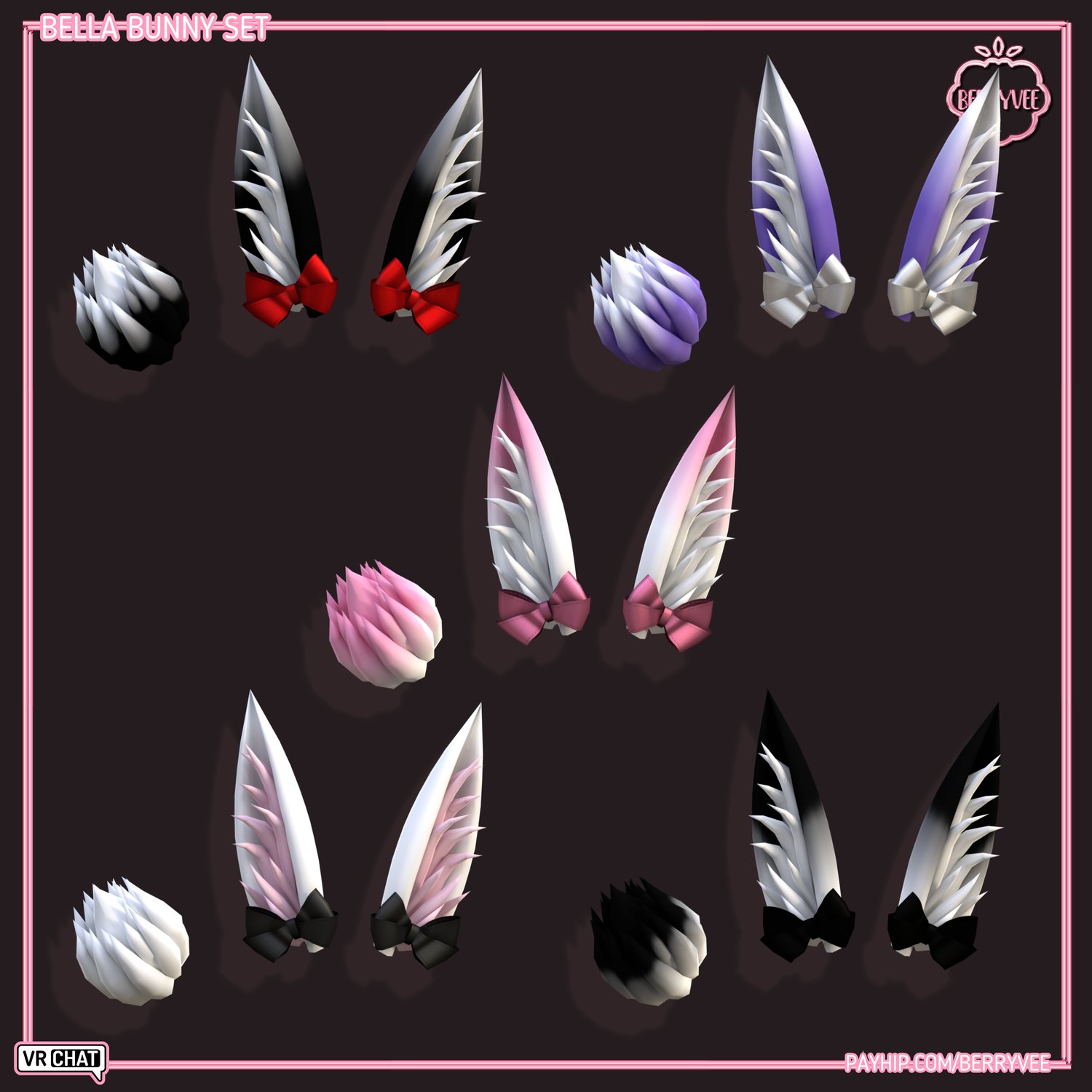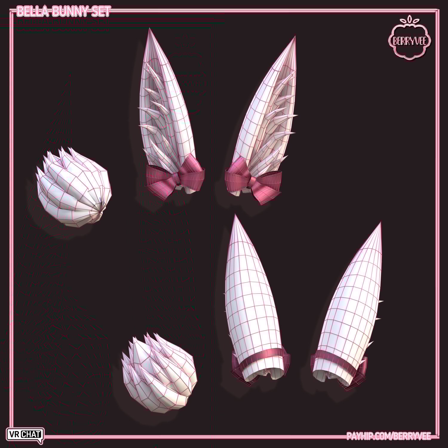 - ✅ All Assets and Avatars sold by berryvee must be properly credited and require hyperlinking to either my Gumroad, Payhip or Discord. [e.g. " Via Hair by berryvee " or " Via Hair by berryvee " ]
