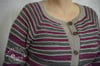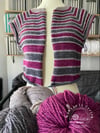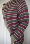 A timeless, top-down cardigan, using 3 different colors, seamlessly, with raglan sleeves. The neckband, botton band and wrist bands are worked as you go, the front button bands are added at the end, knitted on the side of the rows.