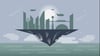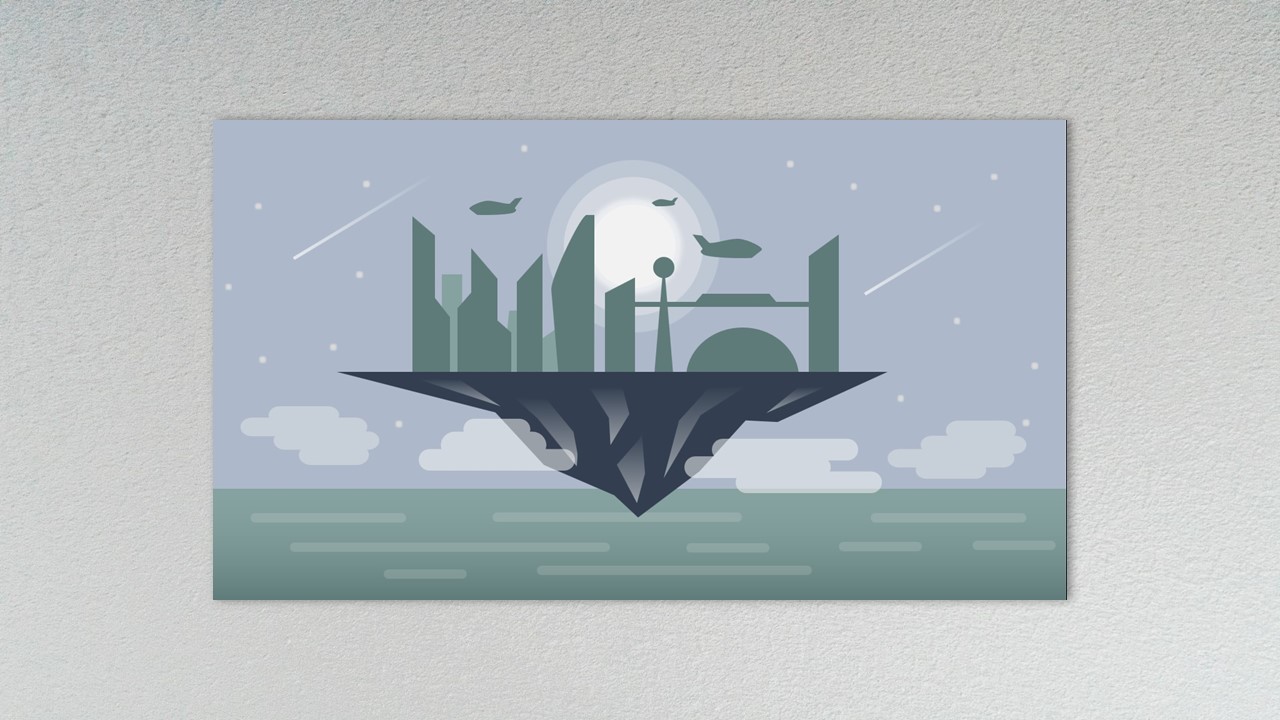 Creative unique digital art landscape, Flying Futuristic City Landscape, Created with meticulous attention to detail and a blend of vibrant colors.