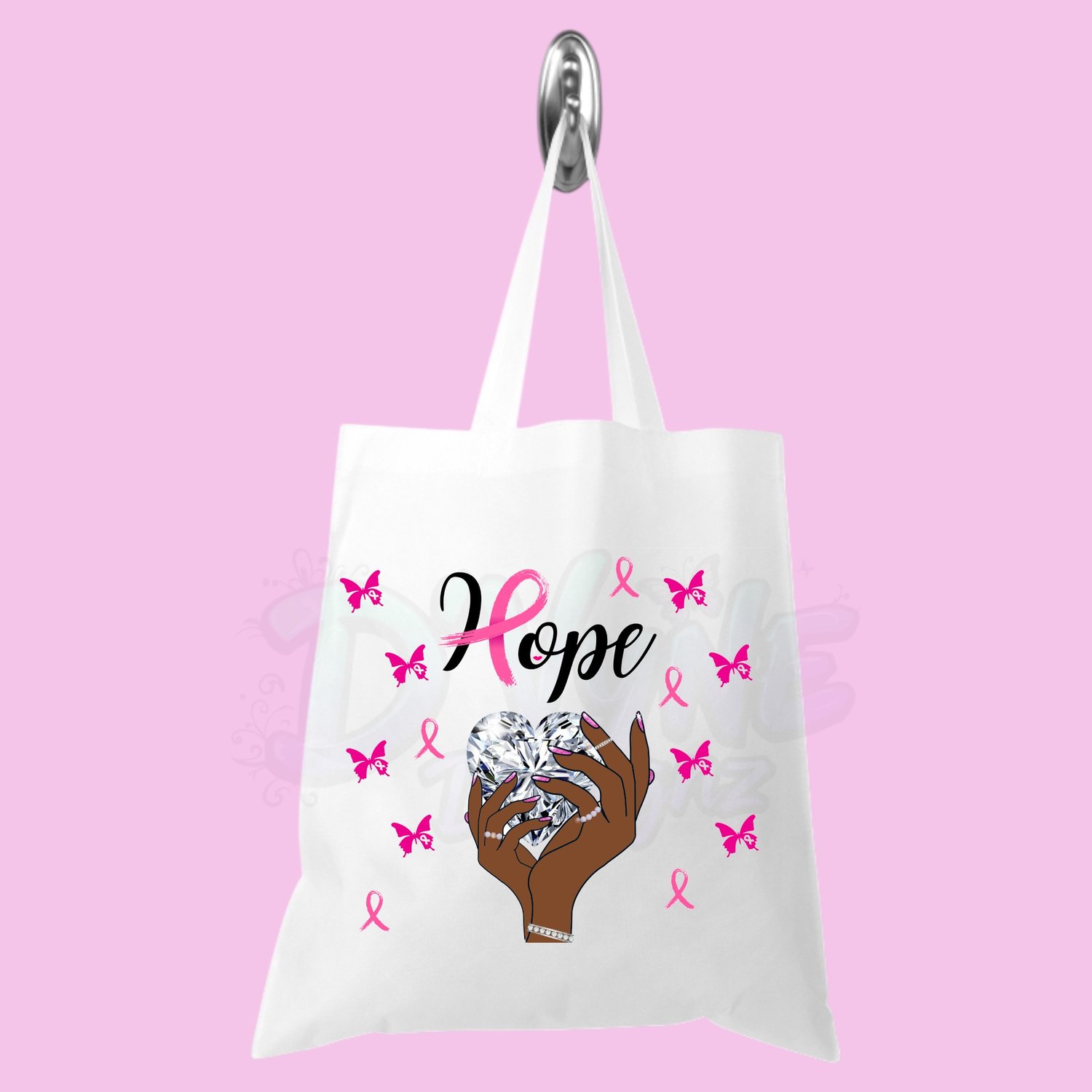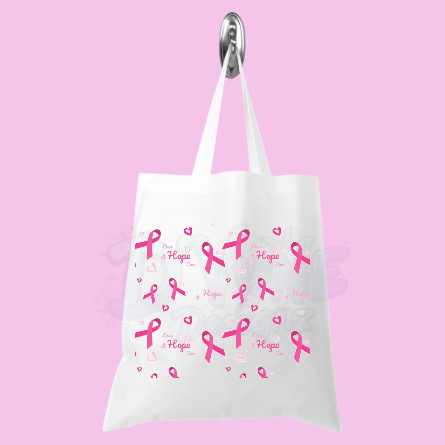 Crafted from durable, lightweight material, this tote offers ample space (approx. 16" x 15.4") for books, groceries, essentials, or even a bundle of pink ribbons. Whether you’re heading to a fundraiser, a walk for the cure, or simply out and about, this bag helps you carry your support with pride.