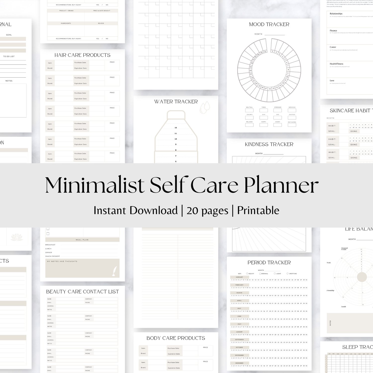 Minimalist Self Care Planner Bundle