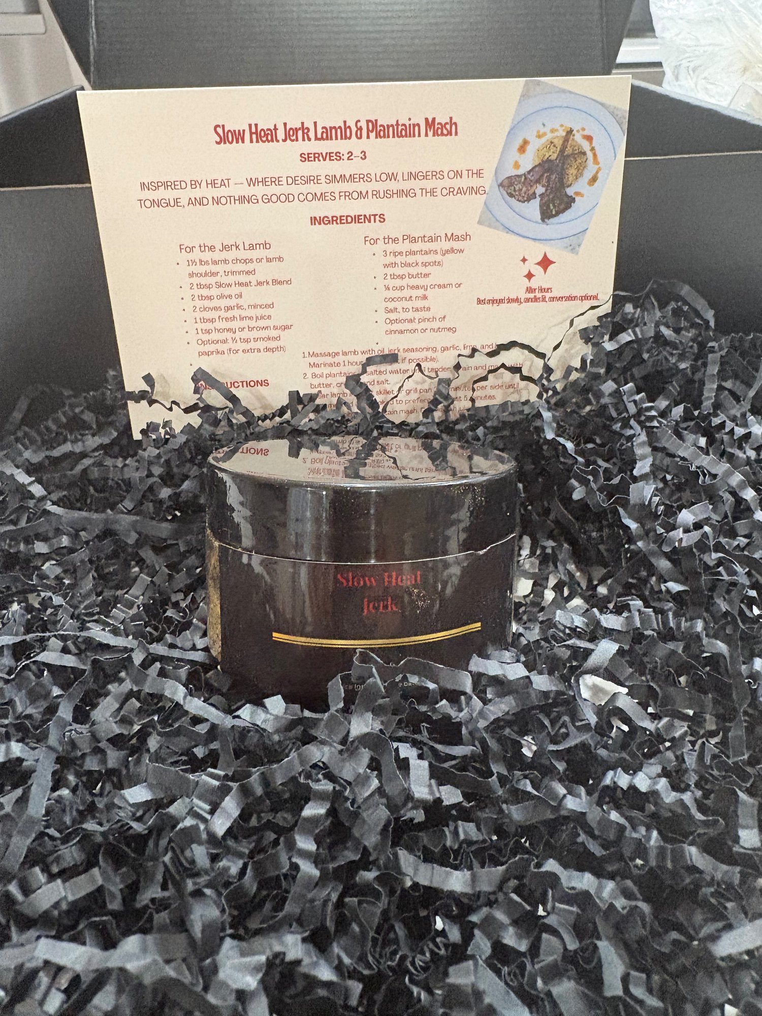 - Jerk seasoning blend + recipe card inspired by a scene from the collection