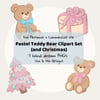 Pastel Teddy Bear Christmas Clipart Set Cute Kawaii Bear PNGs Pink Holiday Clipart Hand Drawn Digital Stickers Commercial Use PNG