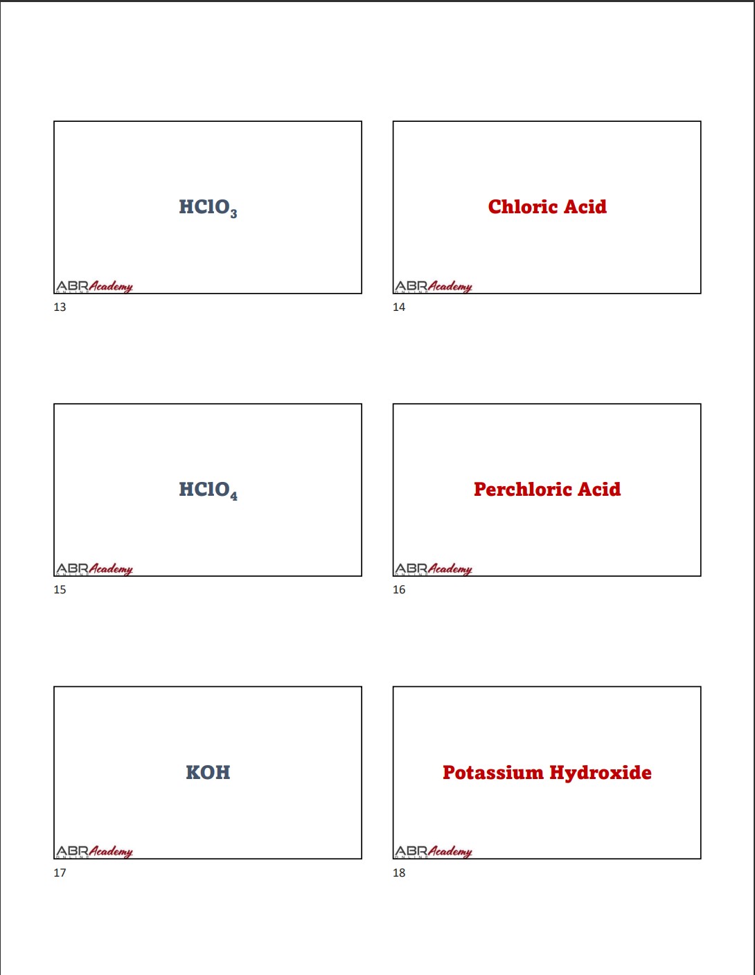 Print out these flashcards to help you memorize the names and chemical formulas of these strong acids and bases