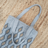 Made in overlay mosaic crochet for an extra thick and textured fabric, and achieve a geometric pattern, it includes a lining in a mixture of linen and sisal, an inner pocket made with the same crochet technique, a magnetic closure, and a half-circle ring to attach extras like a keychain.