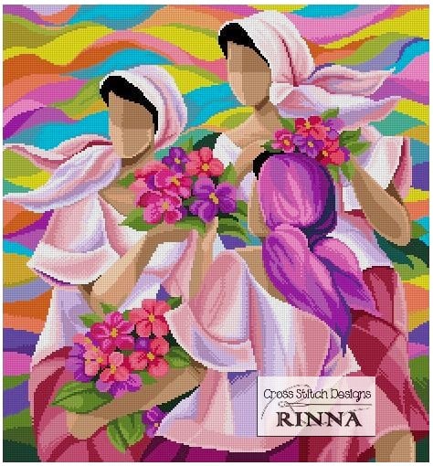 Filipino Art Ladies and Petals of Summer -Filipino Art Cross Stitch PDF Downloadable