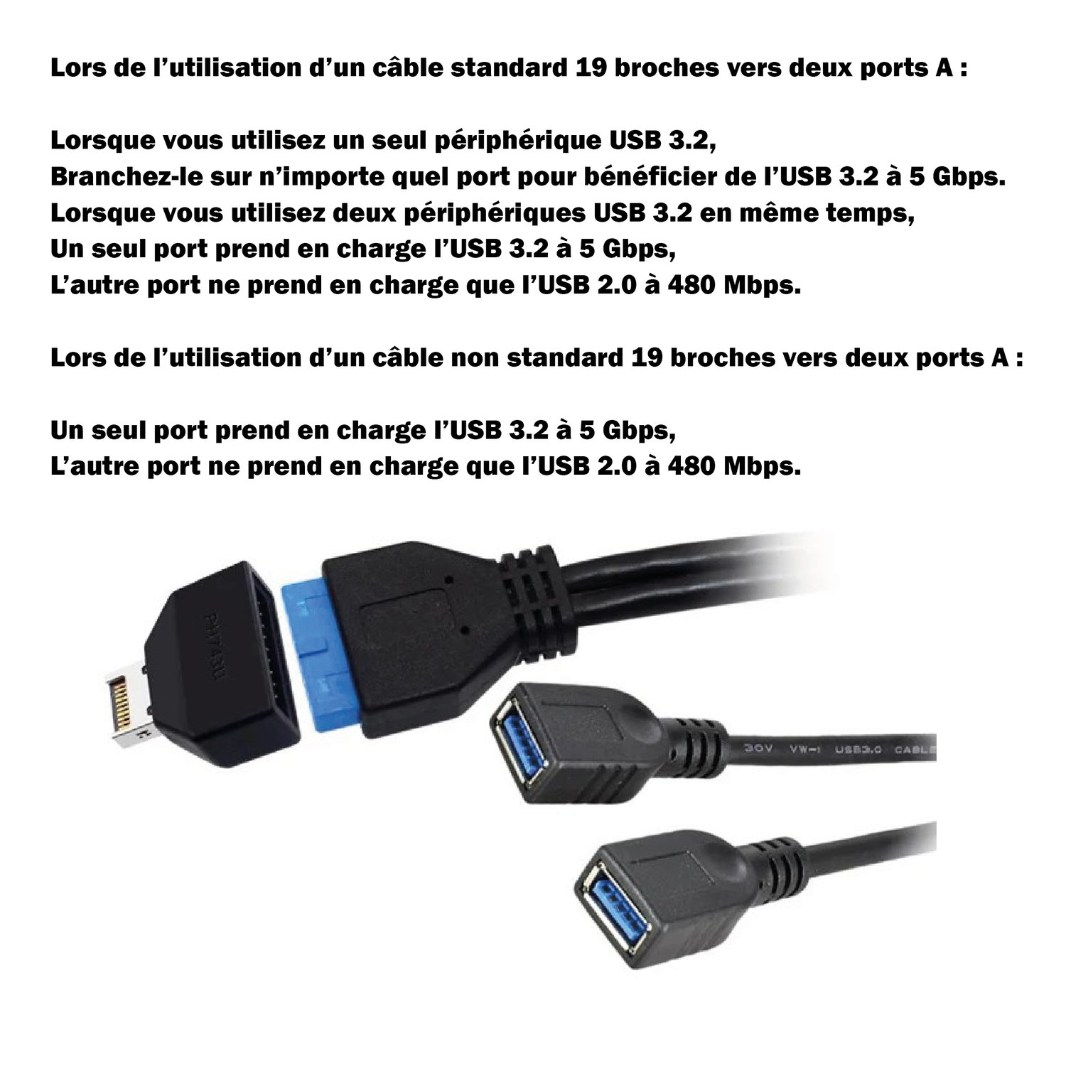 - USB 3.2 Gen2 jusqu’à 5 Gbps (uniquement sur un côté).
