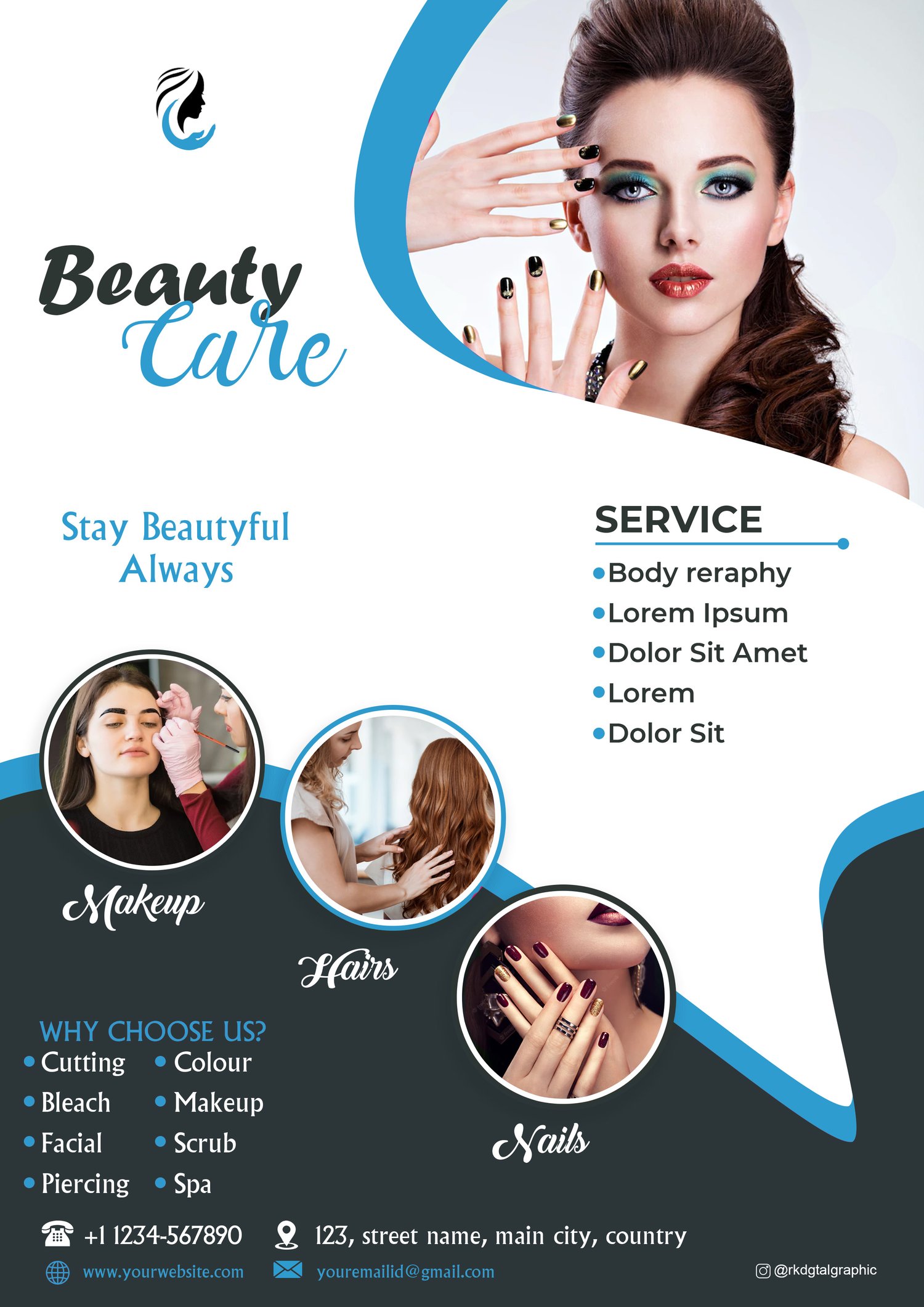 This Beauty Care Brochure PSD Template is fully editable in Photoshop (CS6 & CC). Perfect for salons, spas, nail studios, and makeup artists who want to showcase their services in style.