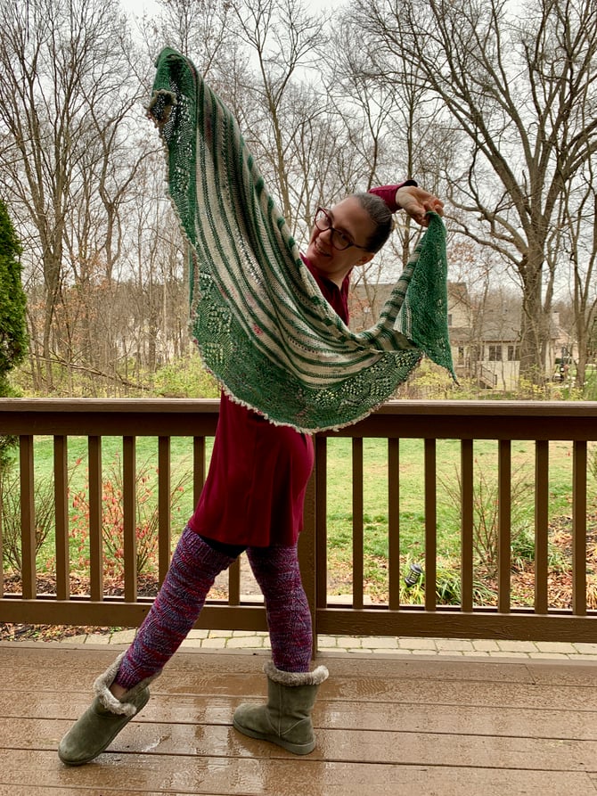 Lace is charted AND written! (Lace does not occur within increases, so this pattern is a fantastic first shawl, and I really hope you will come kal with me on IG, @ajoyfullmesswithjess
