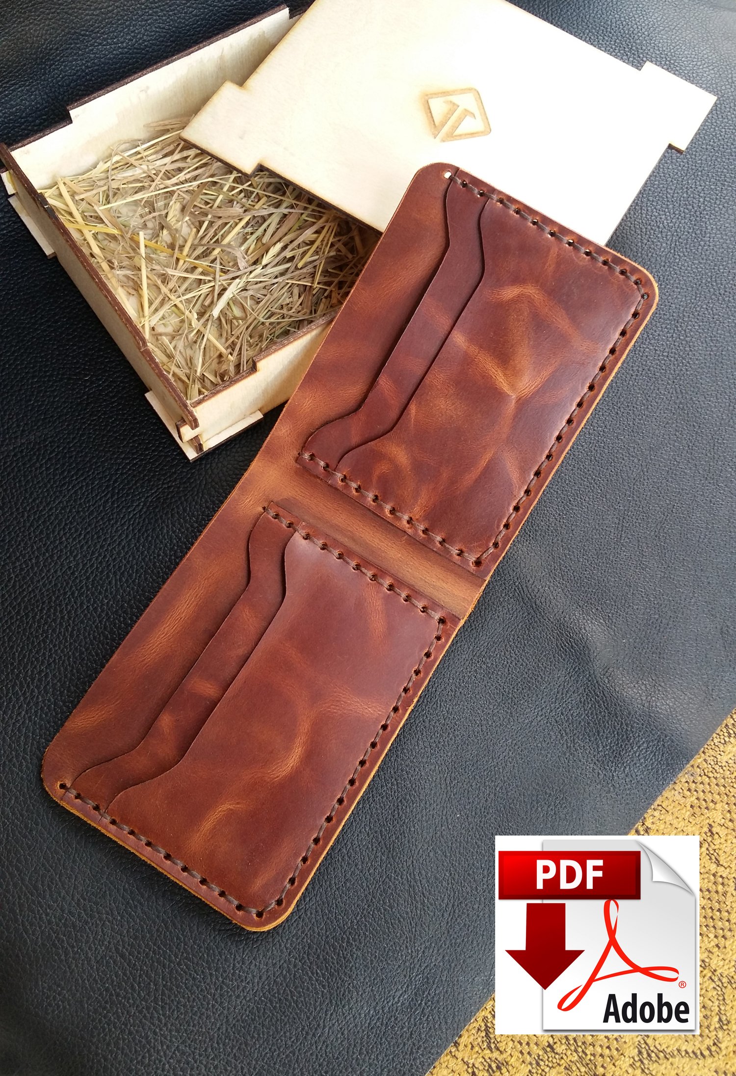 This is a digital download PDF Pattern This is a leather wallet pattern. The Wallet PDF Pattern is appropriate for leather crafters with Beginner skill level and above. The leather wallet template allows for diverse leather and thread combinations and its compact size makes it suitable for front pocket carry.