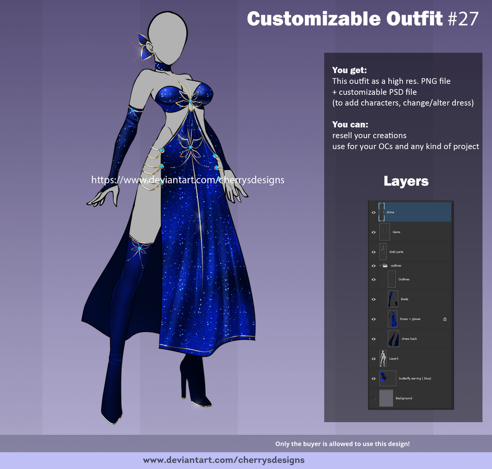 -> You can redraw the lines by following the colored base, to alter the outfit to your liking.