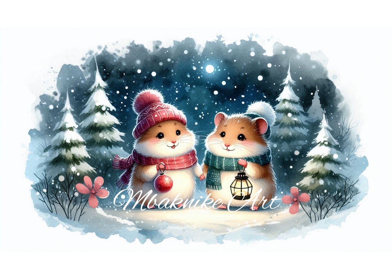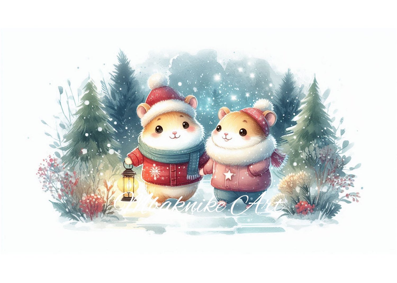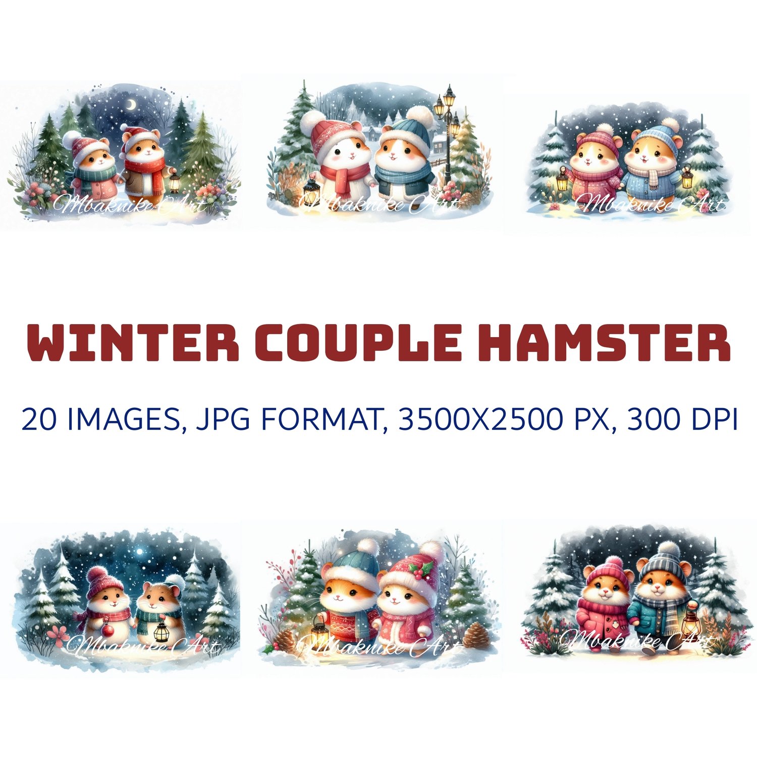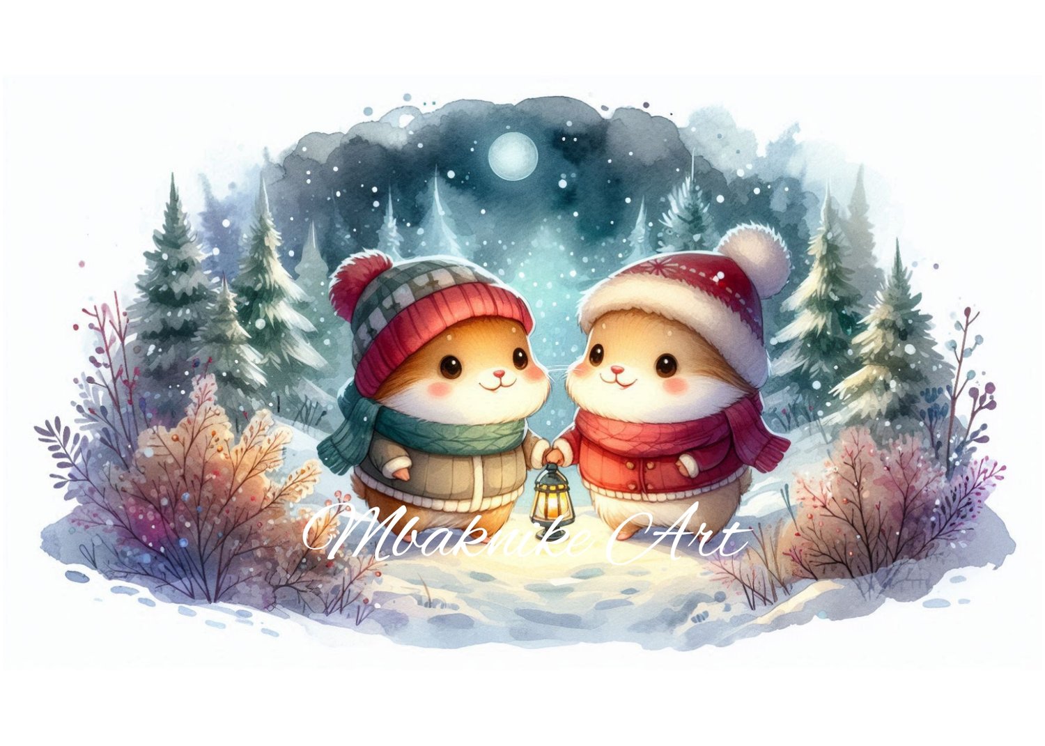 Transform your creative projects with our "Winter Couple Hamster Clipart" collection! This digital pack includes 20 unique and whimsical images, each in JPG Format at a high resolution of 300 dpi and 3500x2500 px.