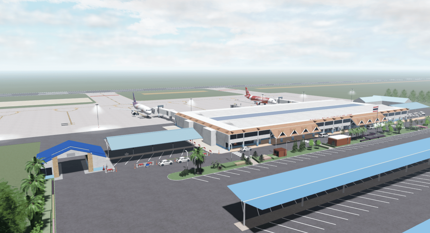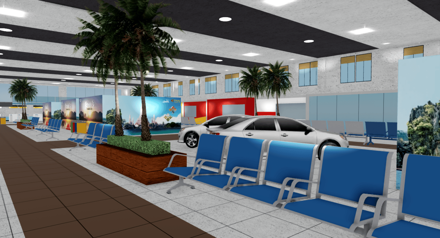 Step into a replica of Chiang Rai Airport, inspired by real-world terminals in Northern Thailand. This airport features spacious interiors, departure gates, jet bridges, check-in counters, security checkpoints, and lounge areas with custom seating and decor. The exterior includes parking areas, ground services, and realistic runway access—ideal for flight roleplay or airline simulation games.