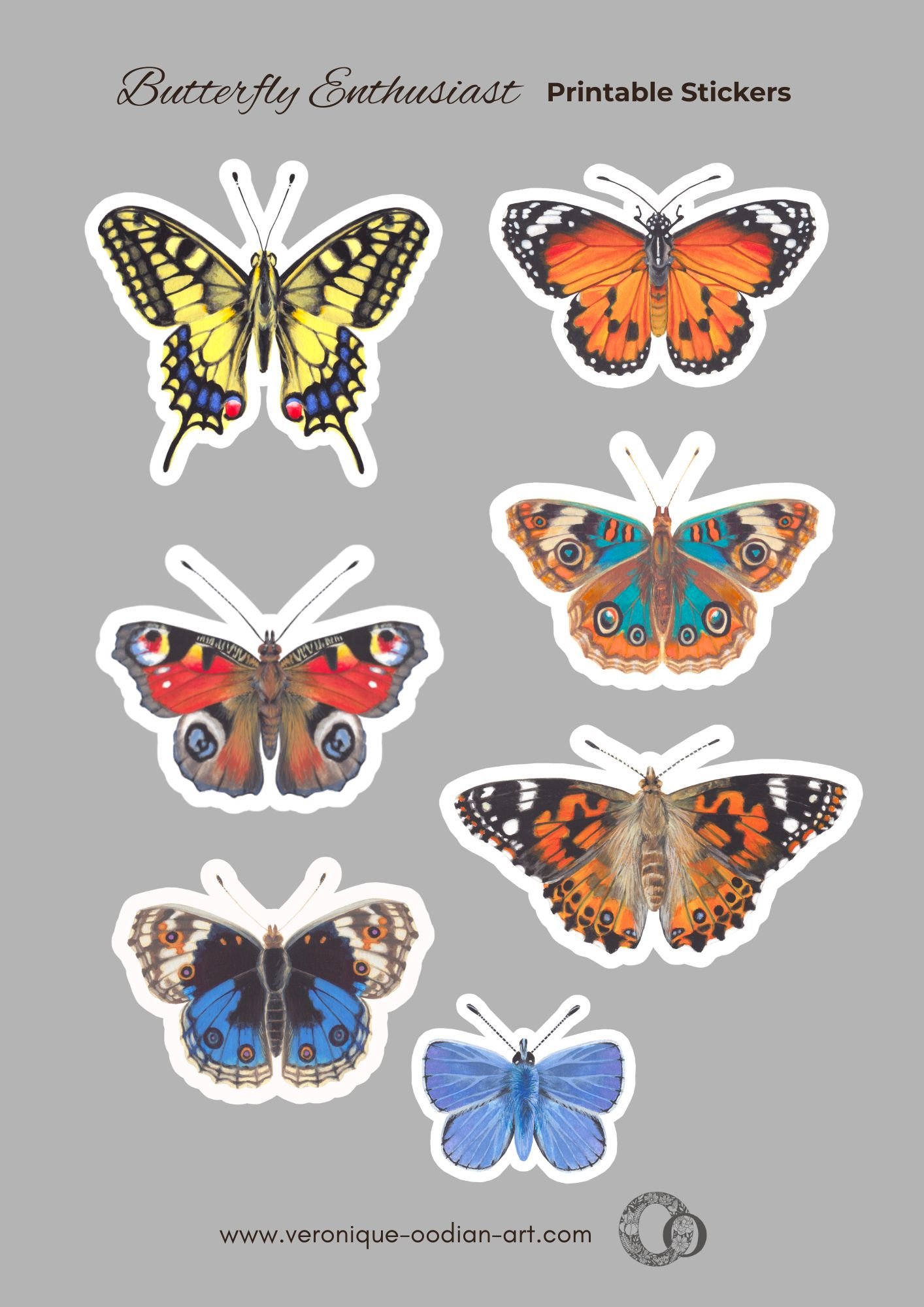 Butterfly Enthusiast Printable PDF Sticker Sheet