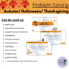 This product includes 60 problem-solving cards perfect for Fall/Autumn, Halloween, and Thanksgiving lessons for ELA and ESL students.