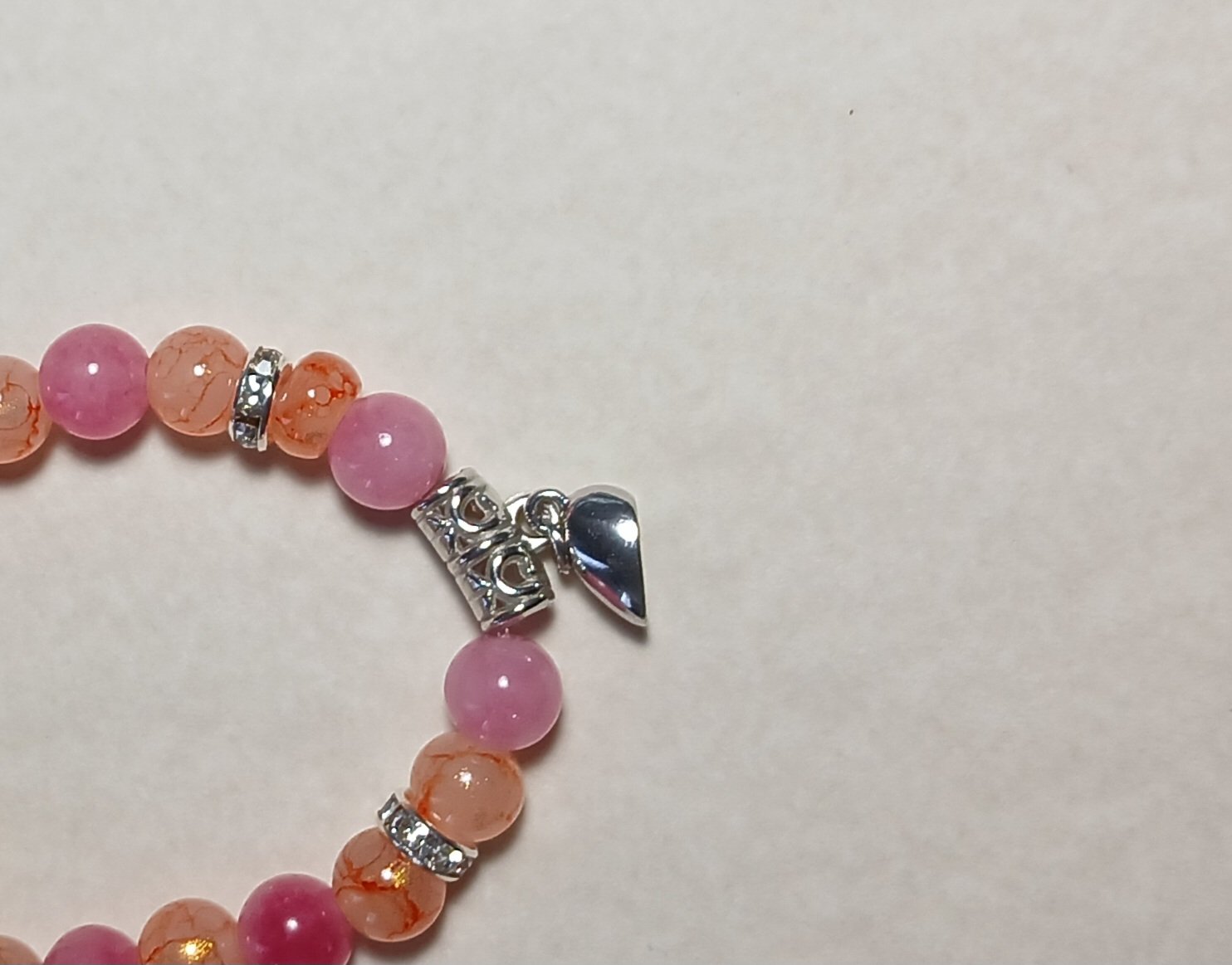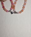 set of 2 glass bead bracelets with a magnetic heart charm