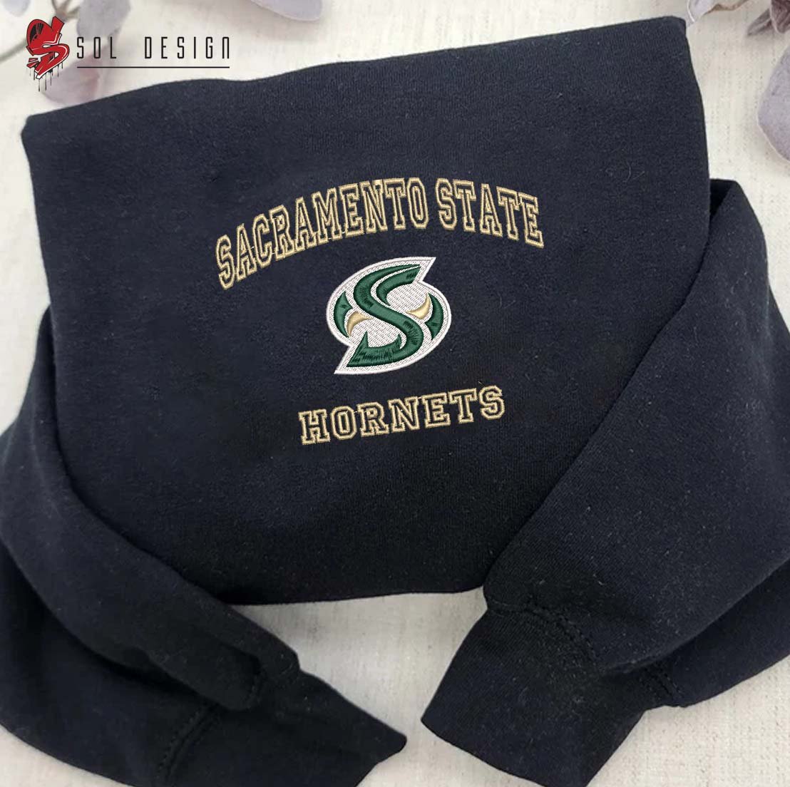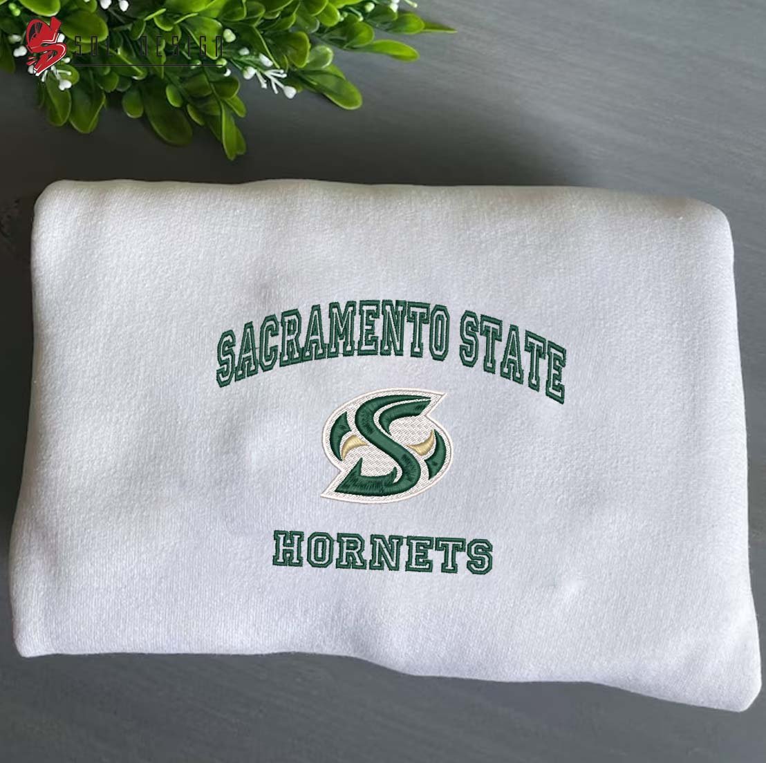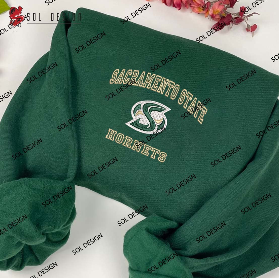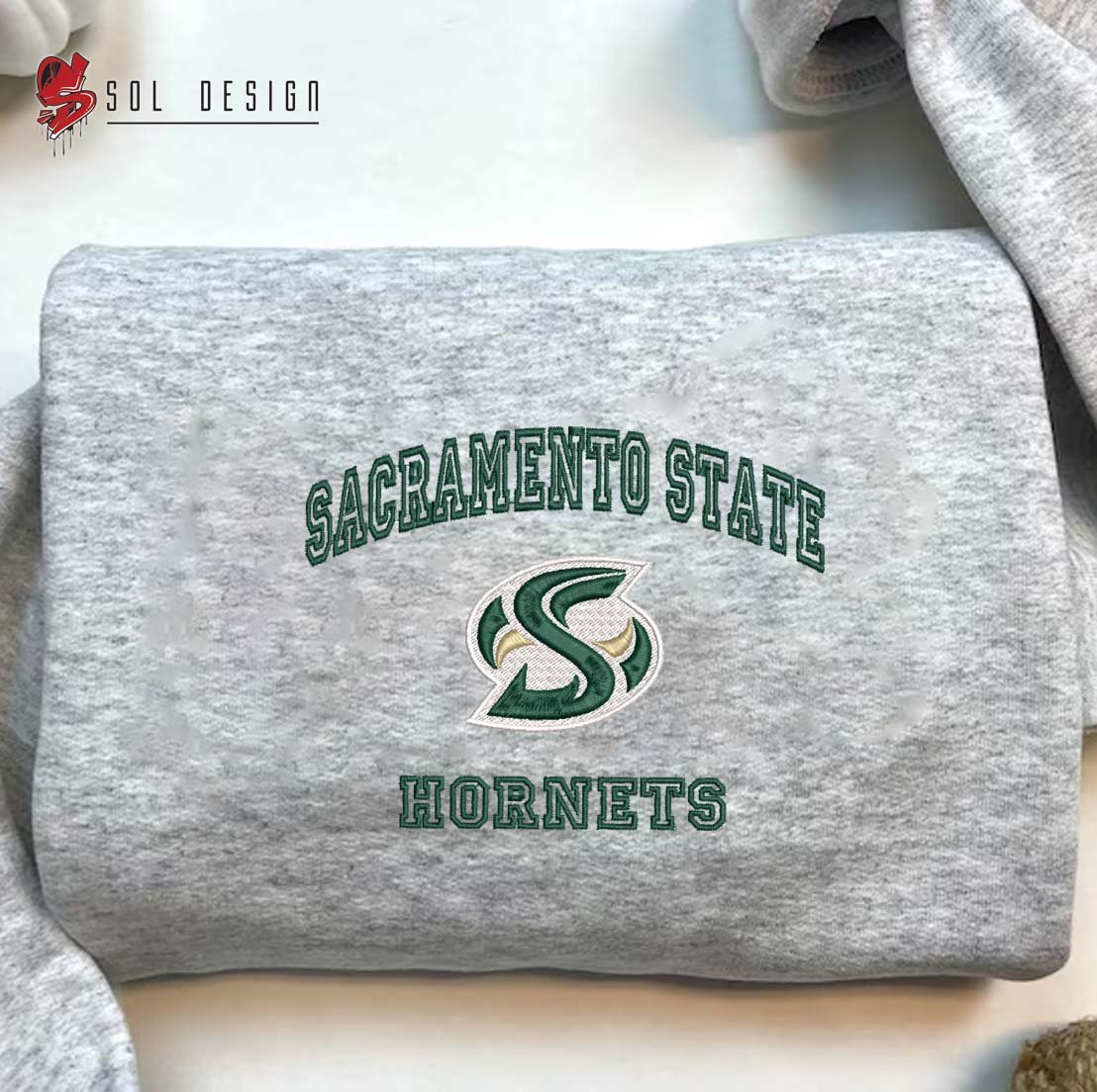 Sacramento State Hornets Football Team Embroidered Crewneck, College Football Embroidered Sweatshirt, NCAA Sacramento State Hornets Team Sweatshirt, Game Day Embroidered Hoodie, T-shirt