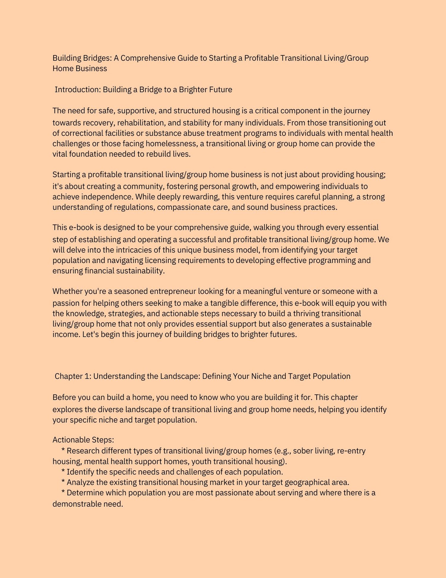Building Bridges: Your Comprehensive Guide to Starting a Profitable Transitional Living/Group Home Business
