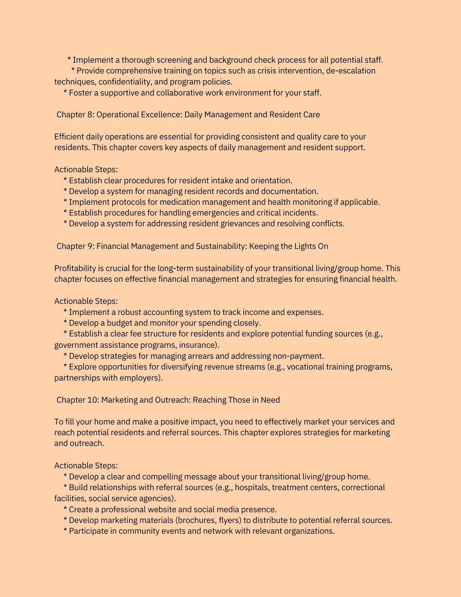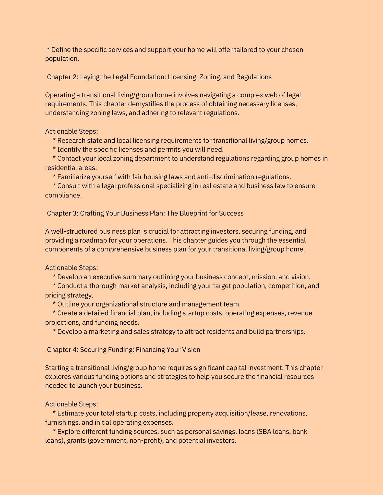 Whether you’re brand new to the industry or looking to expand your existing care services, this book equips you with all the tools, knowledge, and confidence you need to build a thriving transitional living or group home business from the ground up.
