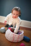 Once you’ve made one of these, you’ll see how easy it is to adjust the pattern--larger baskets require more stitch increases for the base, and small baskets use fewer stitches and rounds of knitting.