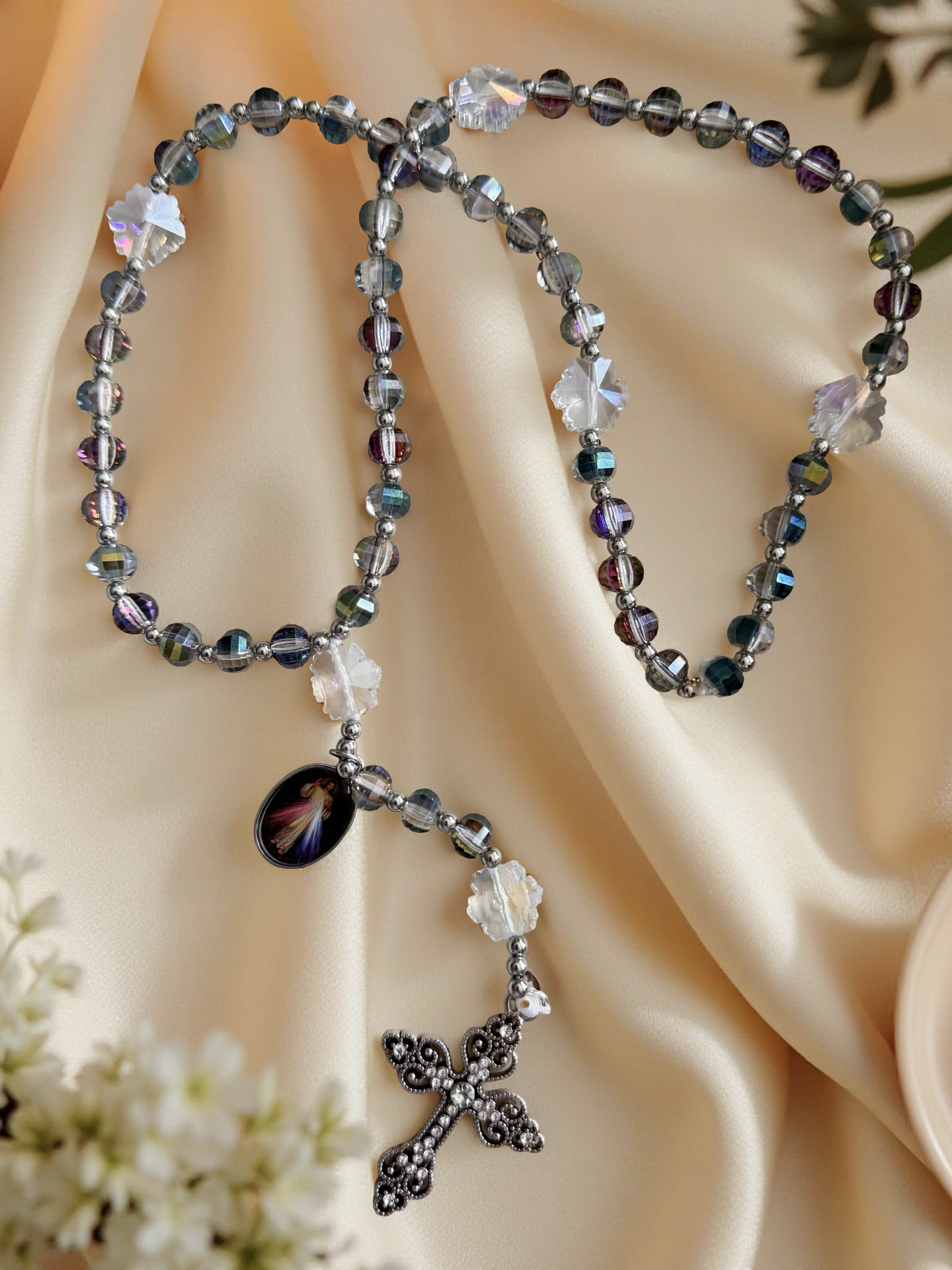 Premium Crystal Divine Mercy Medal Rosary