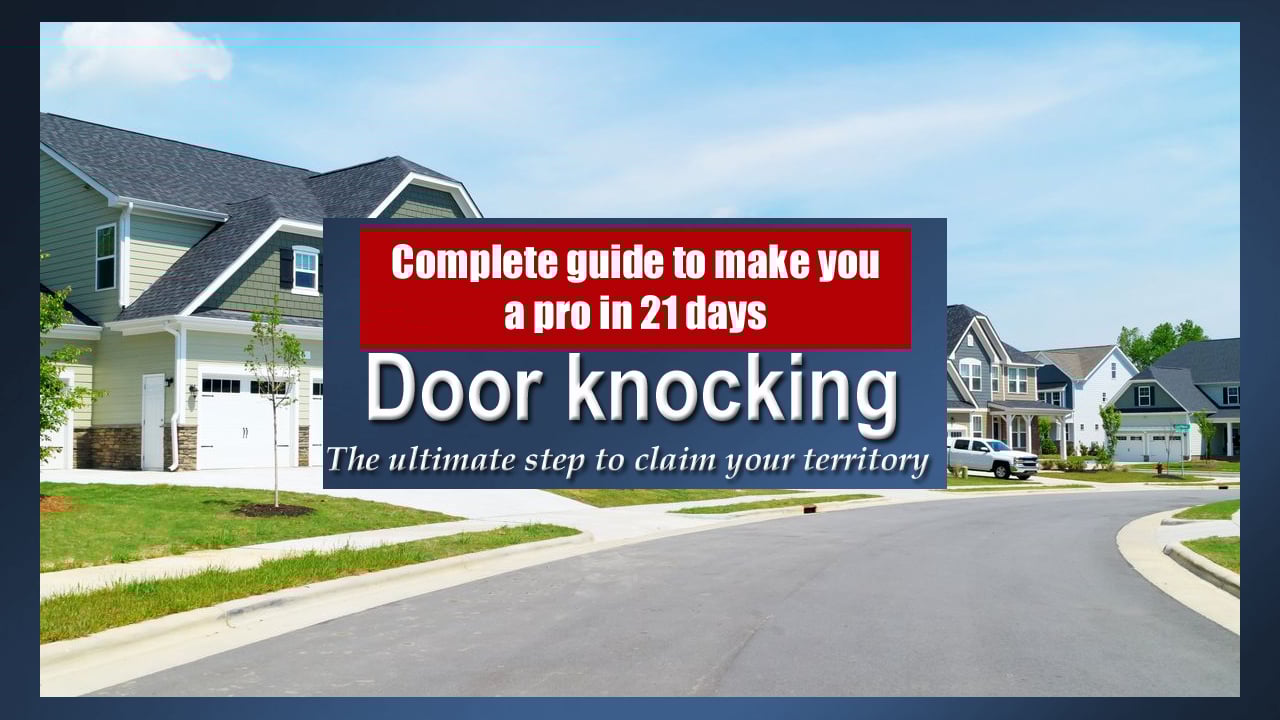 This online course will teach you everything you need to know about door knocking. How to find a door knocking area, what script to use, how to handle objections, how to follow up! and more.